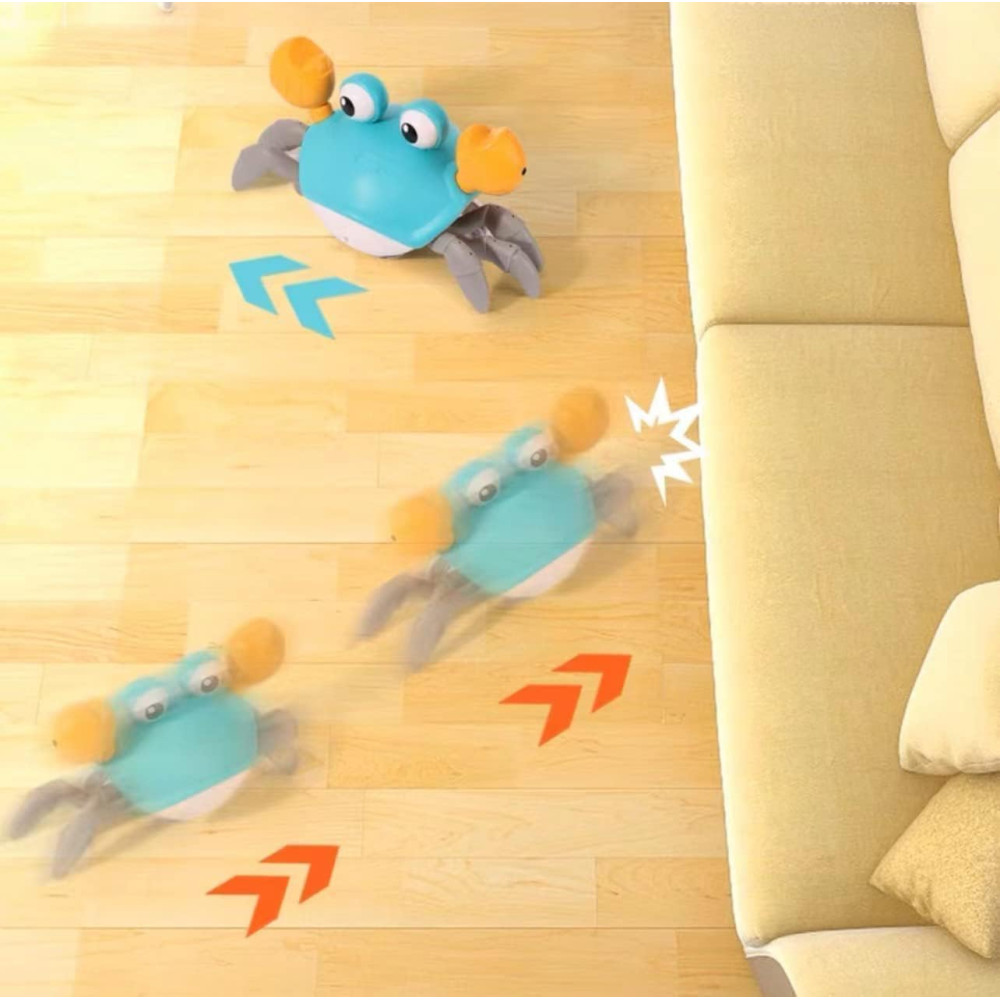 - Smart Fun Toy: Walking crab baby toy automatically avoid Obstacles. When you think you are about to catch the crab toy, it will actively avoid obstacles and go in the opposite direction. Cheerful music and sparkling lights attract children's attention and make them chase it happily